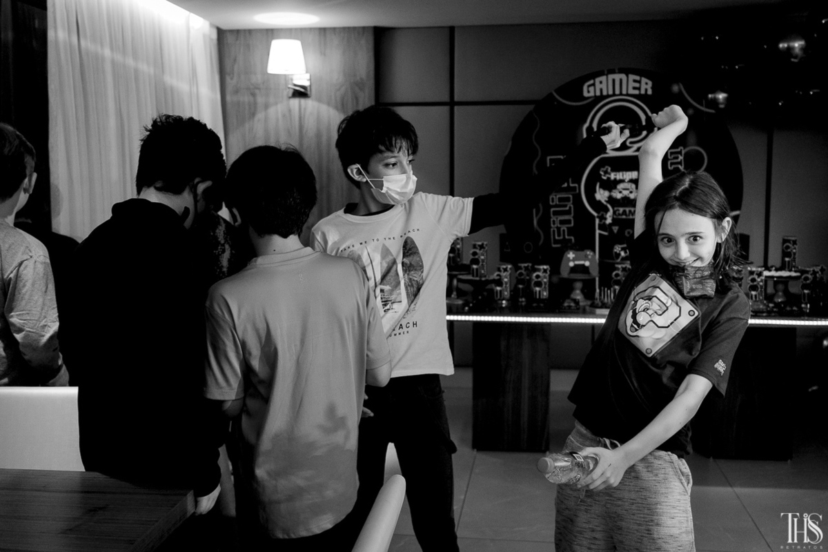A festa do Filipe aconteceu no ultimo sábado a noite no salão de festas do condomínio onde eles moram. A decoração ficou linda preparada com todo carinho do tema gamer que foi feito pela prima da família.
