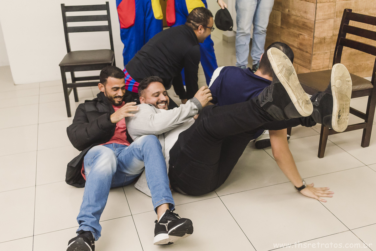 Chegou a hora da brincadeira dos adultos... quem nunca brincou de deitar no colo do colega e ir tirando as cadeiras hahaha primeiro foi a vez do time do papai e não aguentaram nem a primeira tirada de cadeira kkkkk após veio o time da mamãe que deu uma lavada no time do papai elas aguentaram ficar sem cadeira nenhuma! E claro que foi uma festa e motivo de risadas a noite toda.