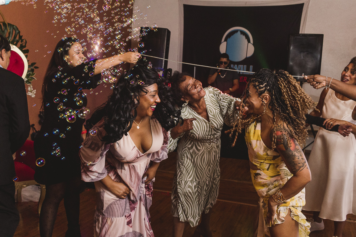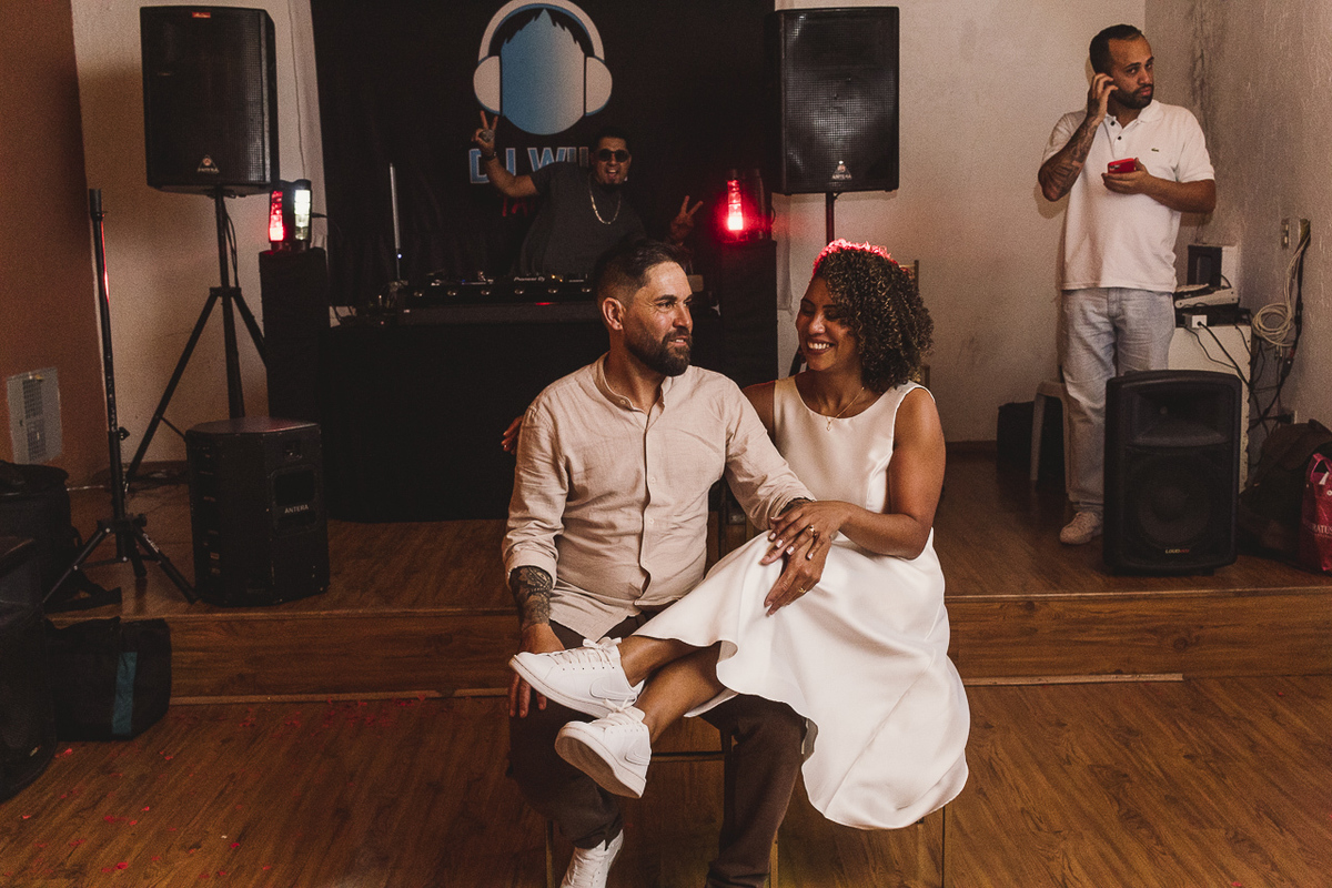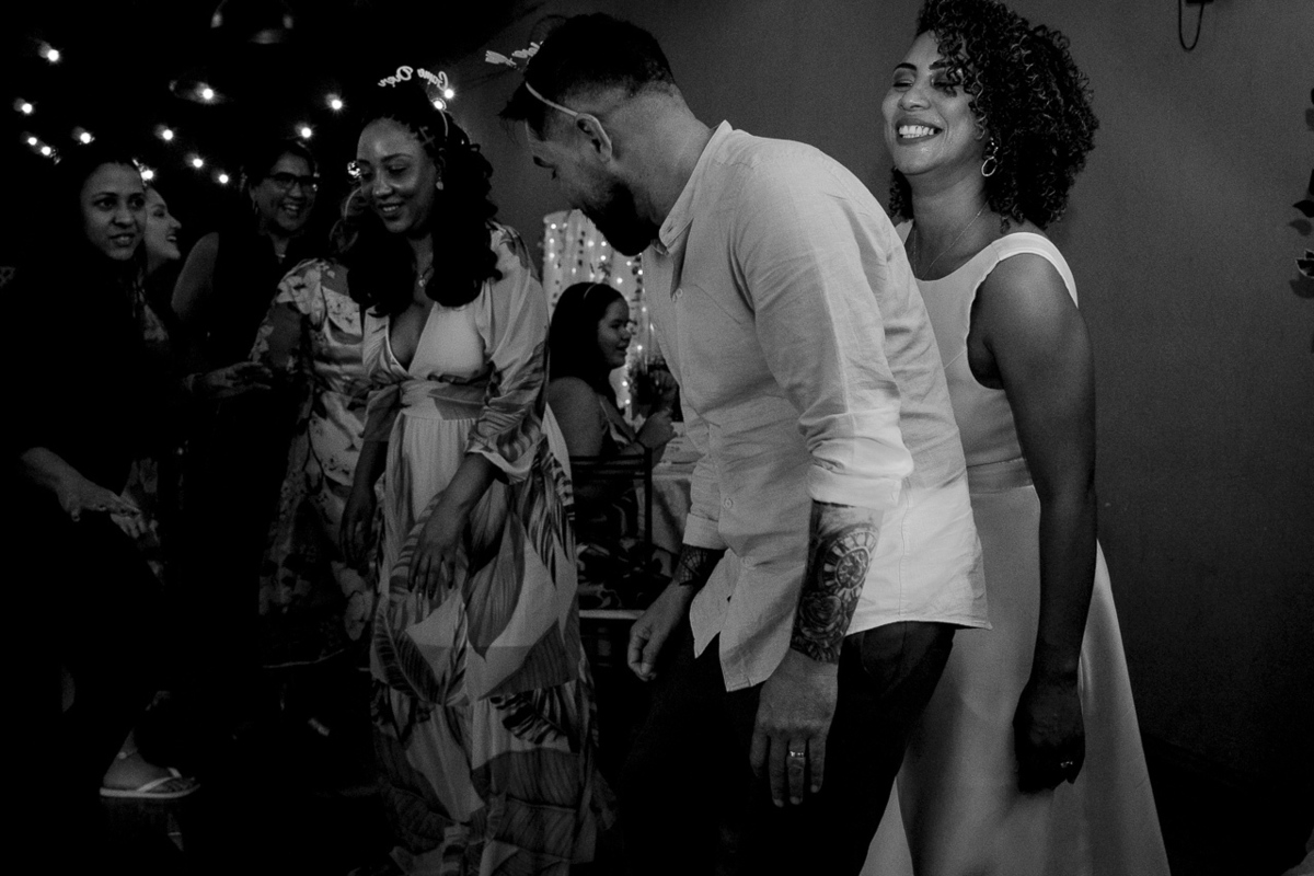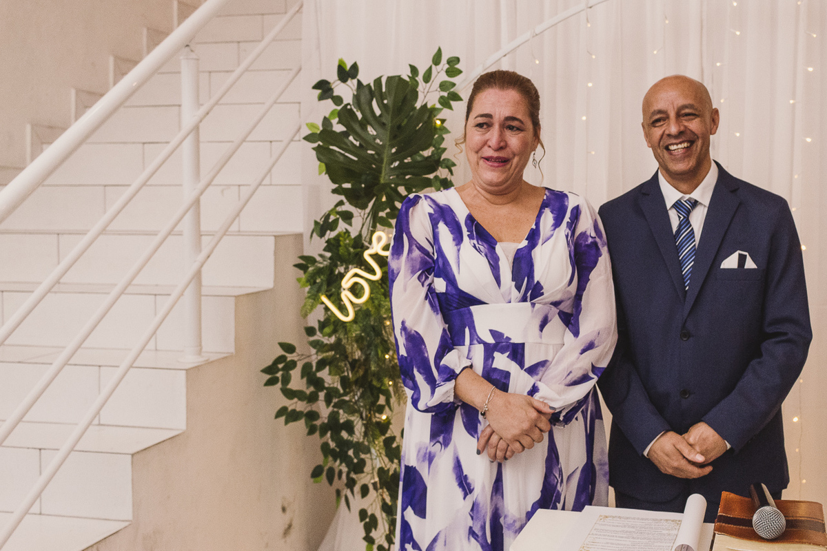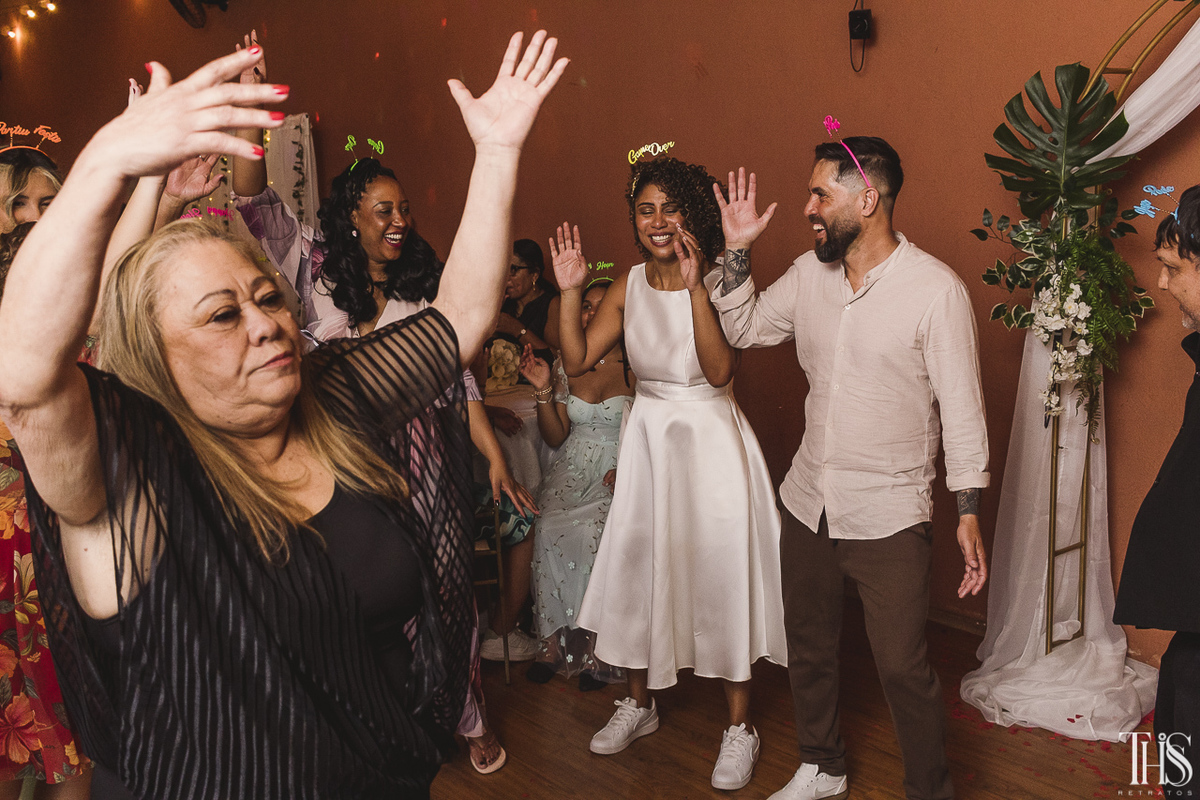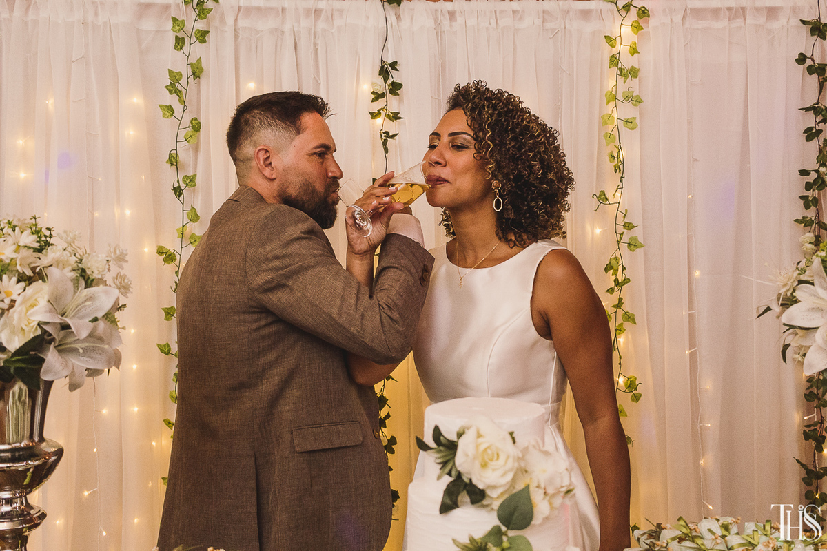 A cerimônia foi emocionante, com homenagens significativas e a presença de todos os convidados que eles tanto queriam compartilhar aquele momento especial. A valsa dos noivos ao som da uma música do casal e a brincadeira divertida com os convidados tornaram a festa ainda mais animada e inesquecível.