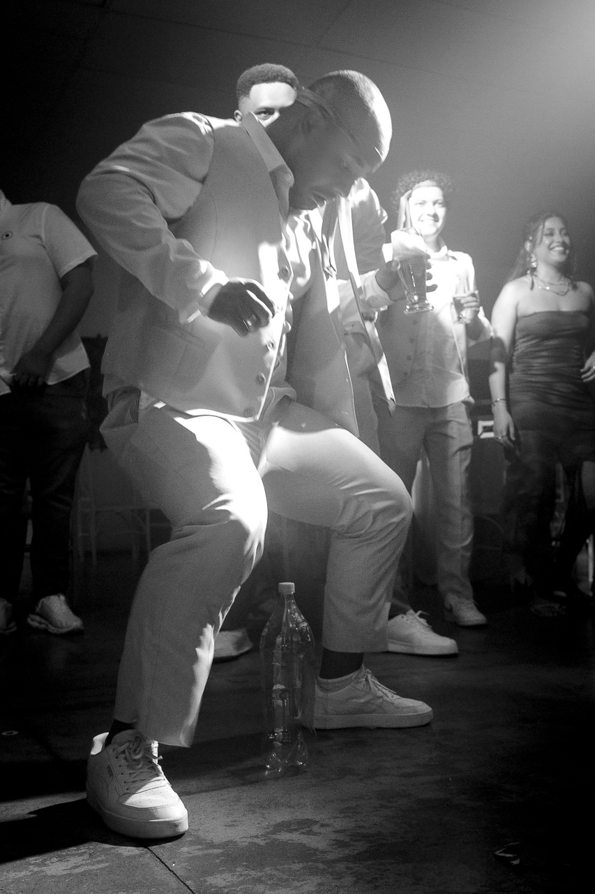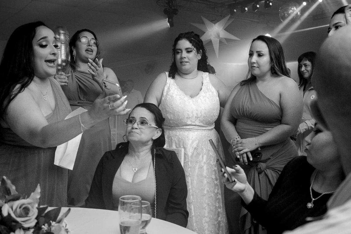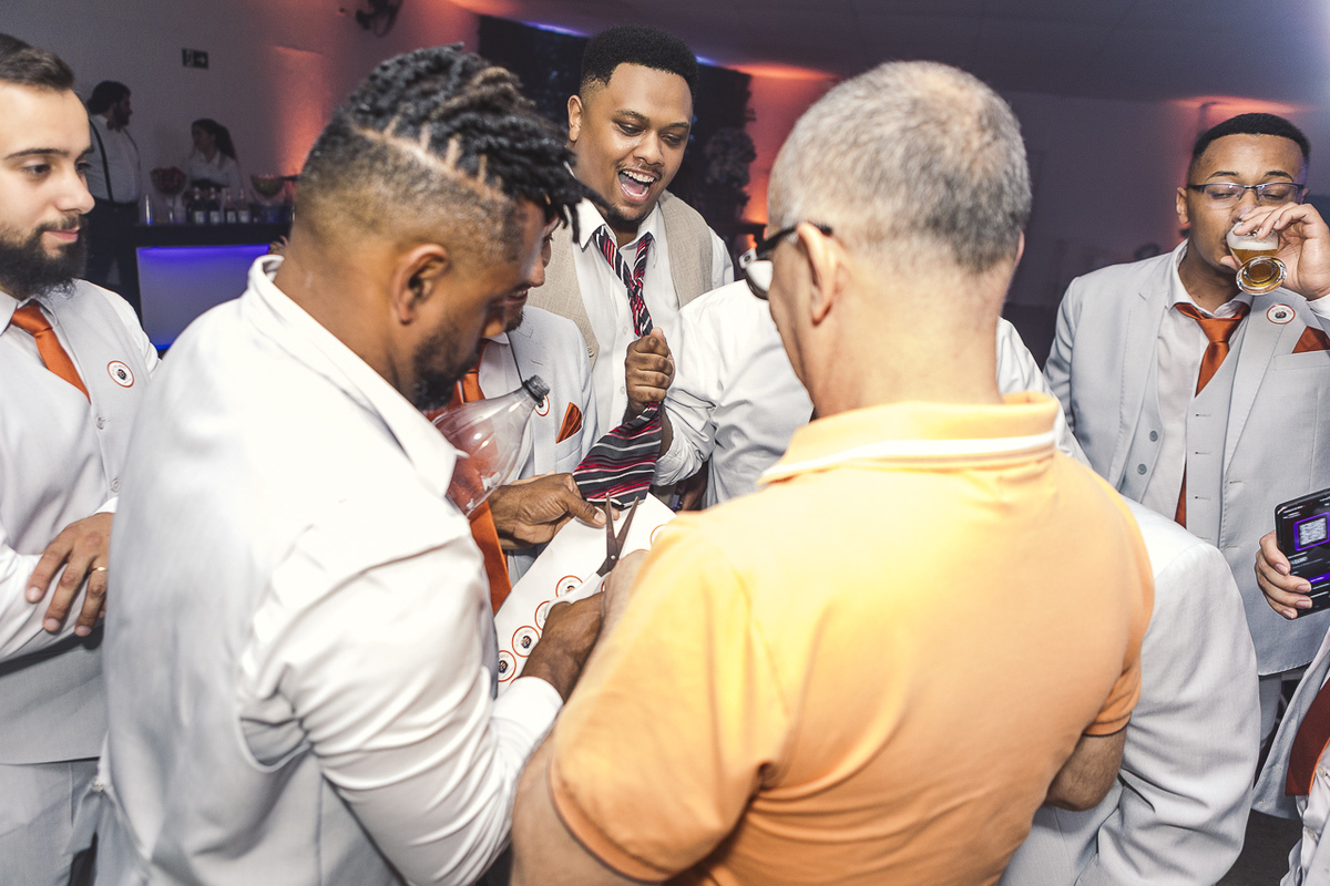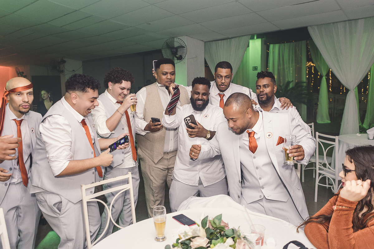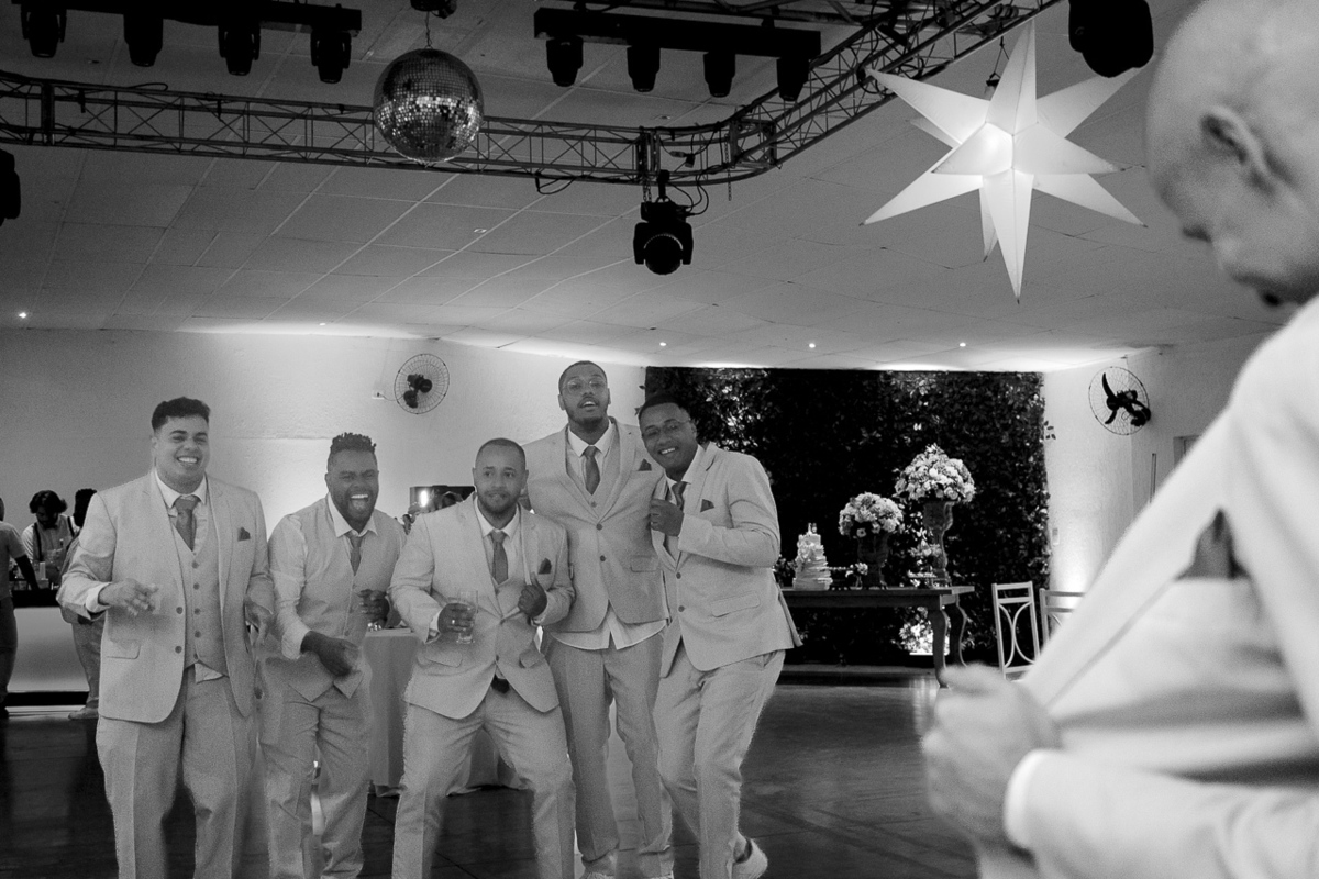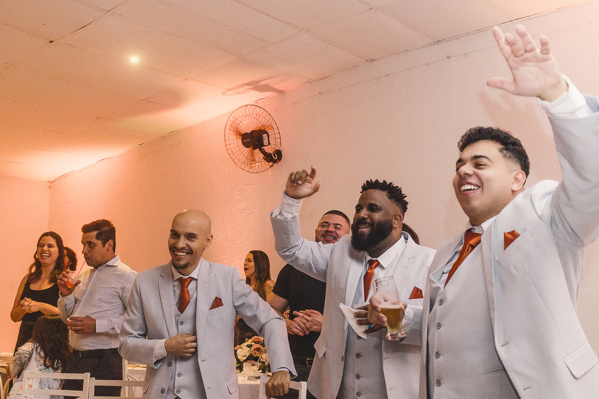 E quando a festa começou ninguém conseguiu ficar parado. Padrinhos e madrinhas transformaram a pista em palco. Os pais dos noivos foram protagonistas: o pai da noiva arrasou no break e o pai do noivo, mesmo recém-saído do hospital, dançou até o último minuto.