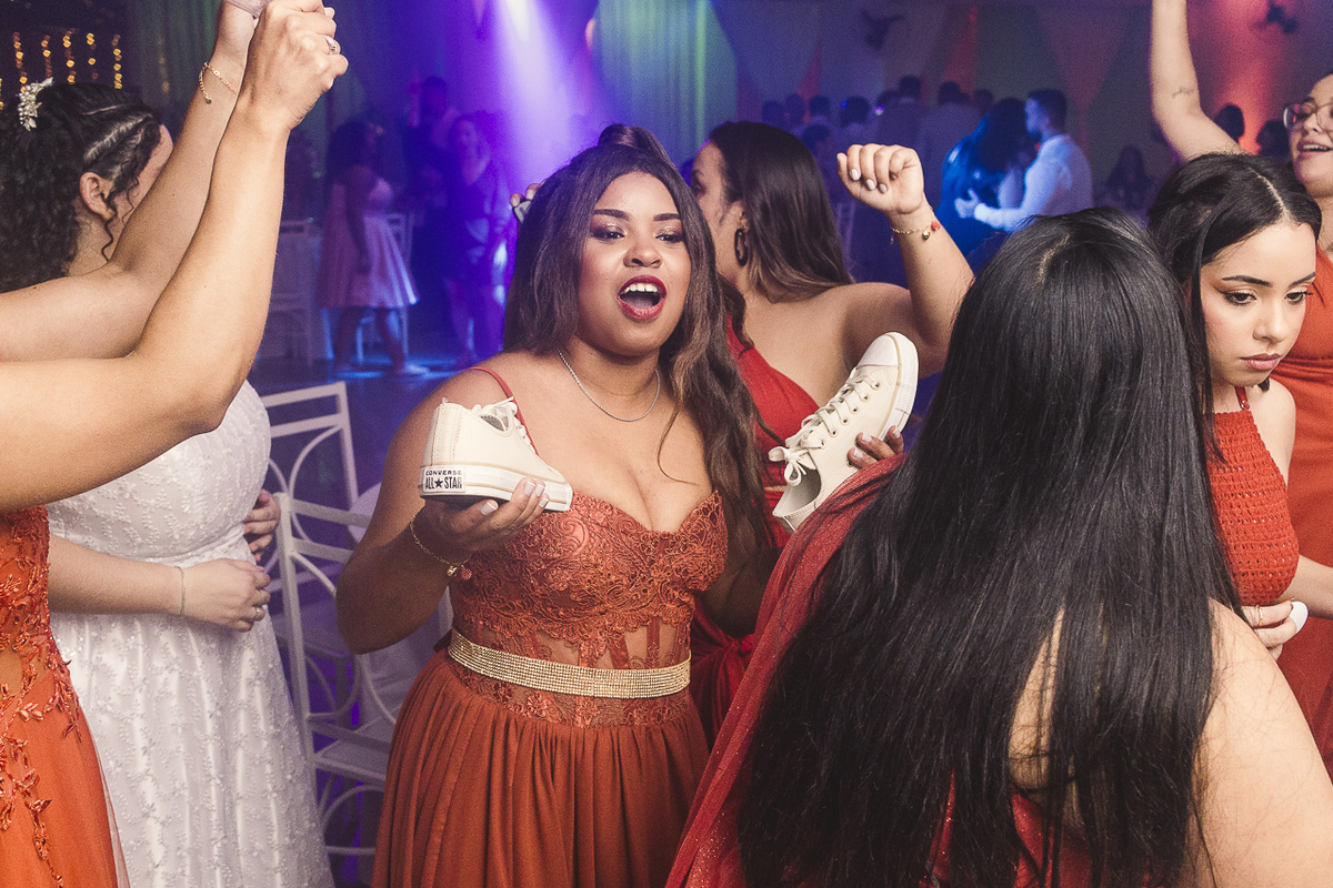 Débora também mostrou que autenticidade é a chave da felicidade. Geek assumida, ela quebrou protocolos e celebrou o amor do jeitinho que é: com tênis, meia divertida e o coração leve. Um detalhe simples, mas que simboliza muito: o casamento foi real, sincero e cheio de personalidade.