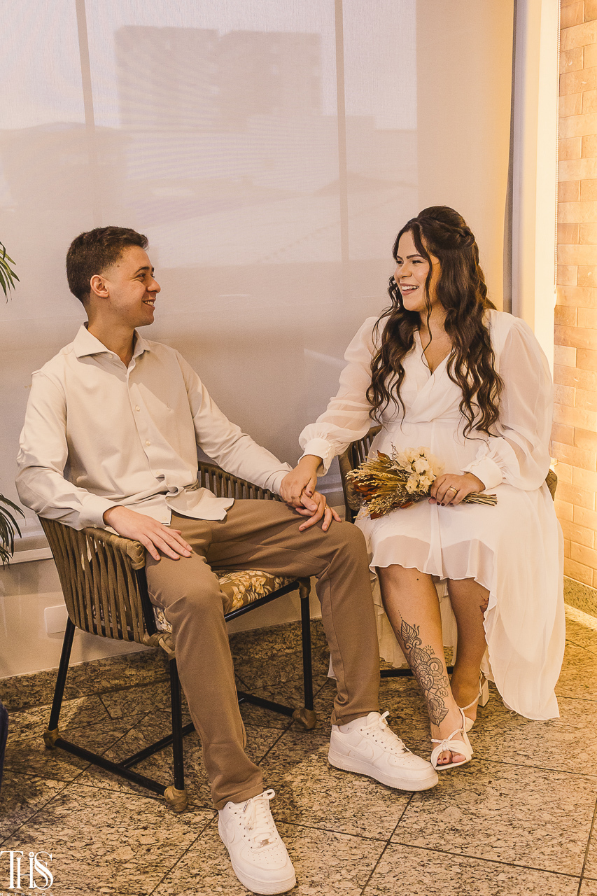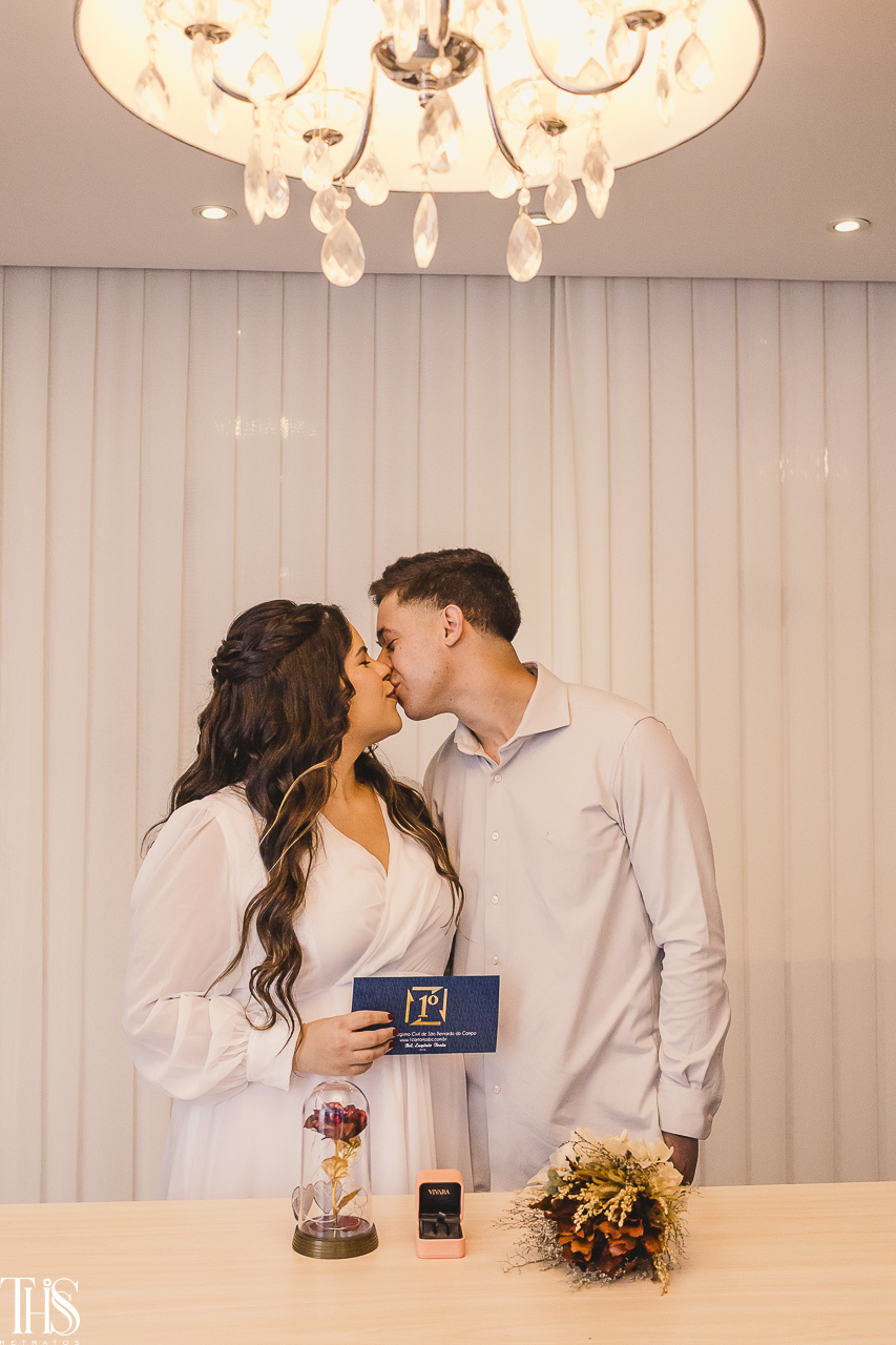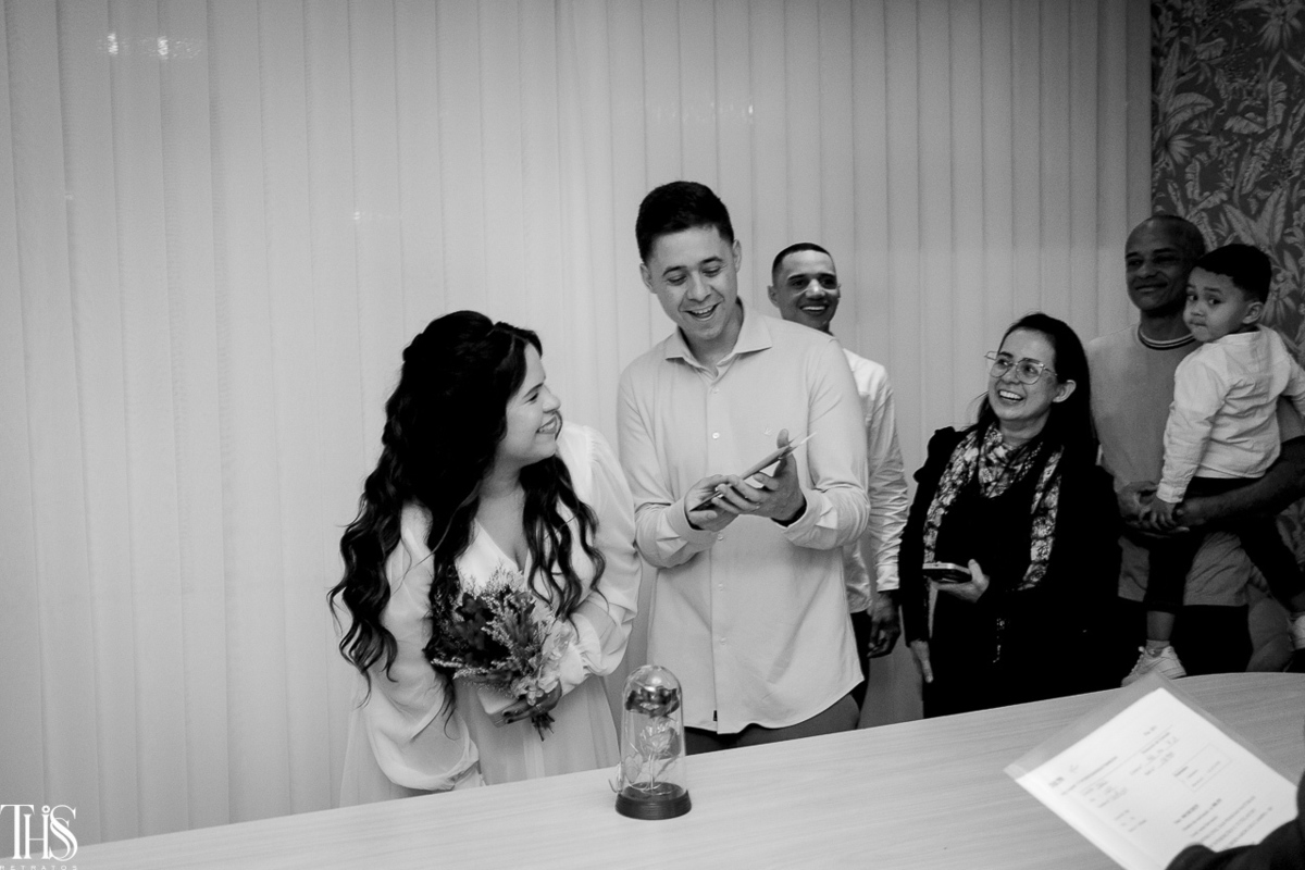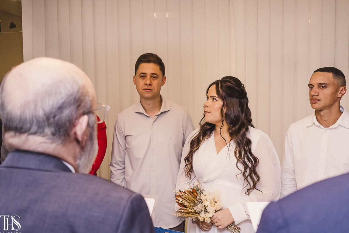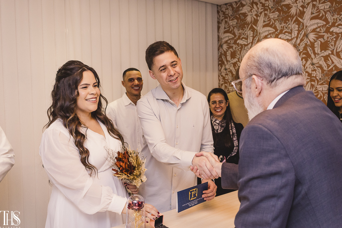 O casamento civil aconteceu em São Bernardo do Campo, e o clima era de emoção pura e um pouquinho de nervosismo também. O Renan, por exemplo, estava tão ansioso que quase entregou a certidão de casamento pro juiz de paz! 😂
