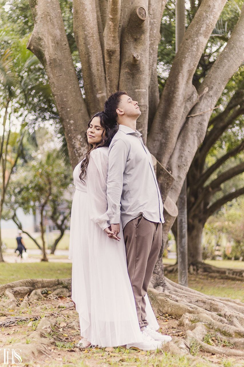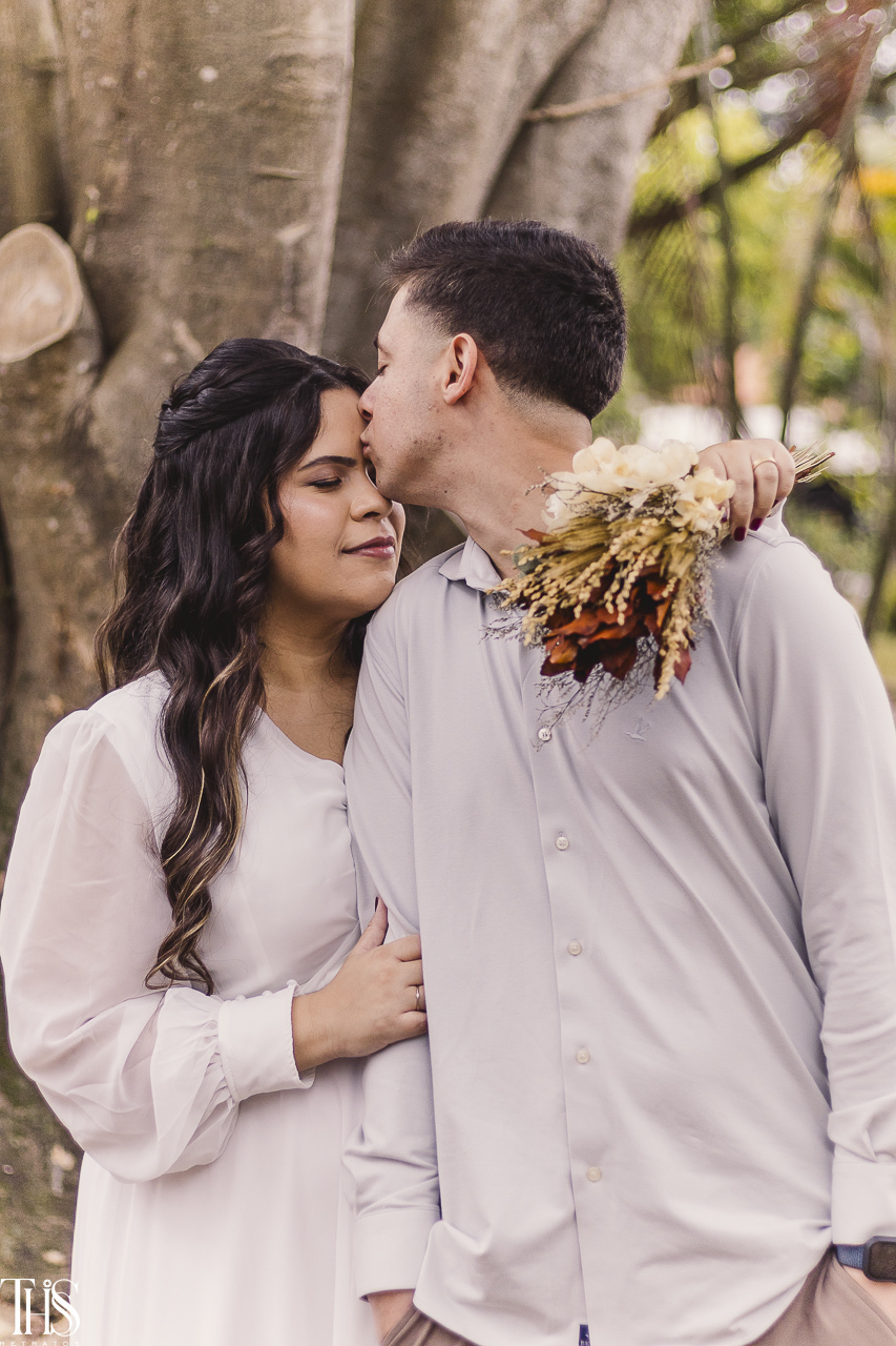 Depois da cerimônia, seguimos para a praça do Parque dos Pássaros, um cantinho cheio de verde e calmaria. O que era pra ser um mini ensaio simples se transformou em uma manhã de leveza, risadas e abraços sinceros.