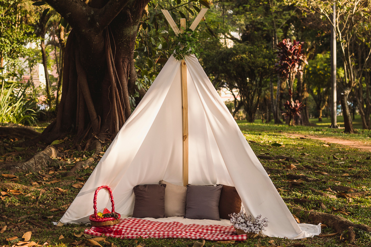 O nosso ensaio irá acontecer externo aqui na cidade de São Bernardo do Campo no bairro Nova Petrópolis e terá o tema piquenique romântico com inclusive uma linda tenda para deixar o clima mais romântico ainda.